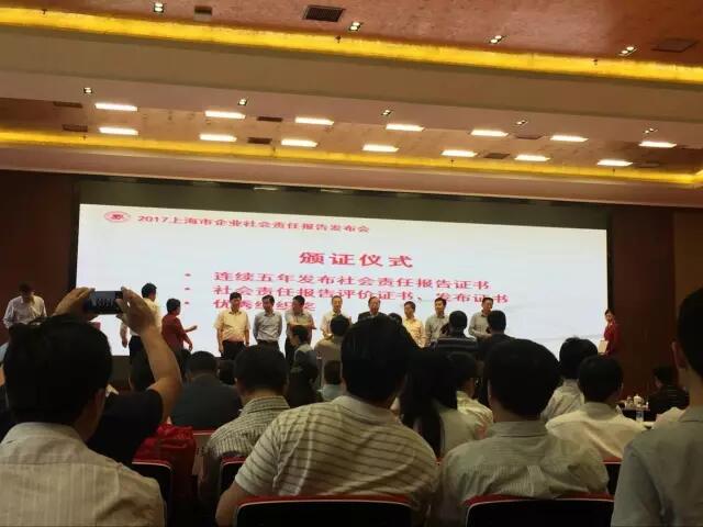 6月16日,“2017上海市企业社会责任报告发布会”在上海上汽安悦大楼报告厅成功举办。今年上海有244家企业参与社会责任报告的发布,这也是嘉荣连续第3年参加并发布社会责任报告。 上海市经济团体联合会副会长兼秘书长李鹤富主持会议,上海市经团联会长俞国生为大会致辞,上海市经济和信息化委员会副主任吴金城、上海市政府副秘书长金兴明在会上发表讲话。